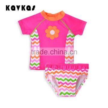 Beautiful Flower Printed Children Swimwear Shoret Sleeve 2pcs/lot Beachwear