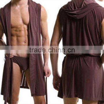 Wholesale Men Satin Silk Bathrobe Sleeveless Hood Bathrobe