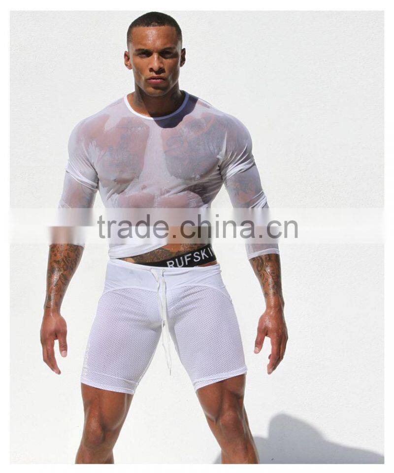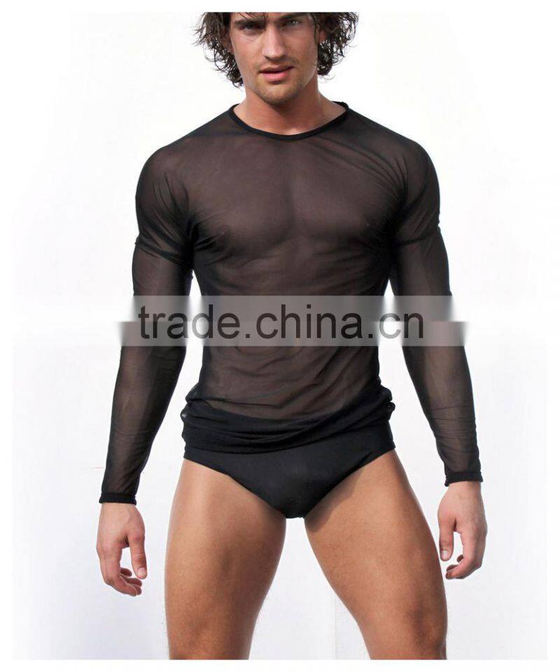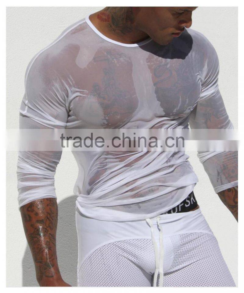 Custom Mens Tops Tee T Shirt Transparent Mesh T-shirt Long Sleeve Undershirt Quick Dry GYM Sport Singlet Clothing ( Not Include