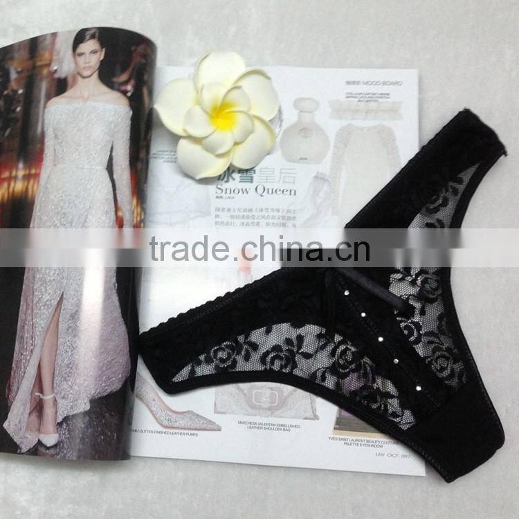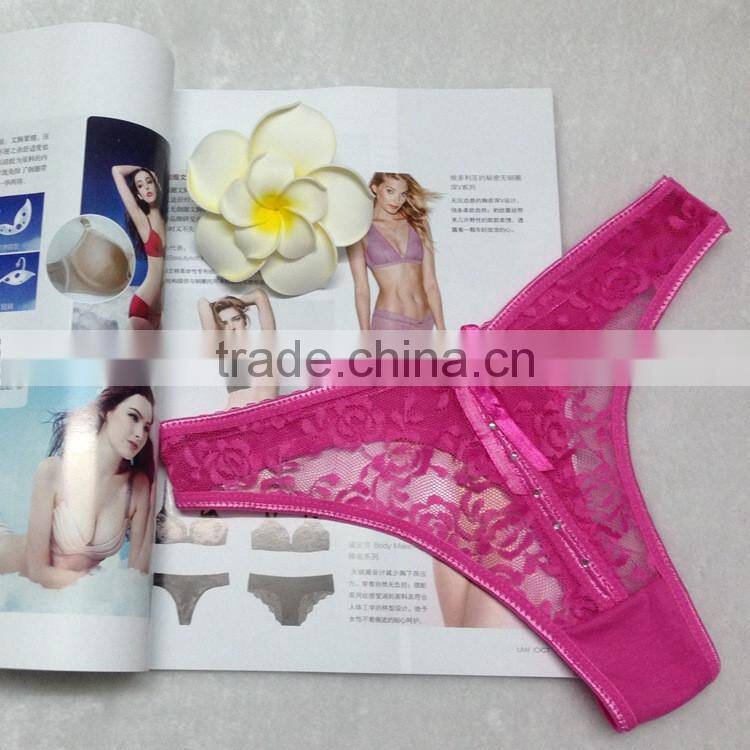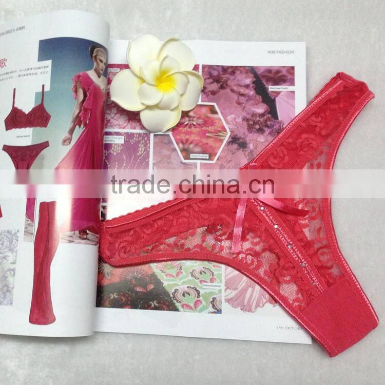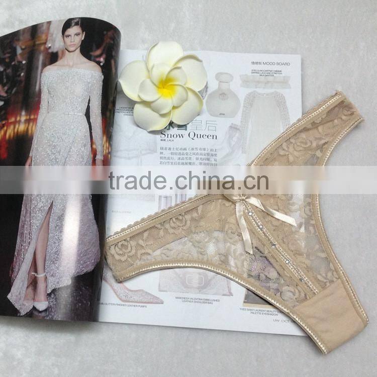 Stock 2016 Bowknot Transparent Diamond Lace Sey Panties Women Underwear Thongs Bragas Women Panties Sey Underwear Women Briefs