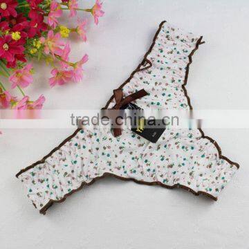 Stock Summer Style Green Flower Comfortable Green Flower Print Cotton Sey G String Women Cotton Low Waist Thongs Underwear Brief