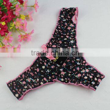 Stock Sey Cotton g String Thongs Women Panties Underwear Briefs Cotton Black With Little Floral G-string Ropa Bragas Tangas Calc