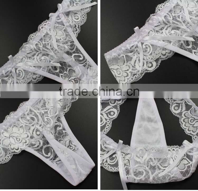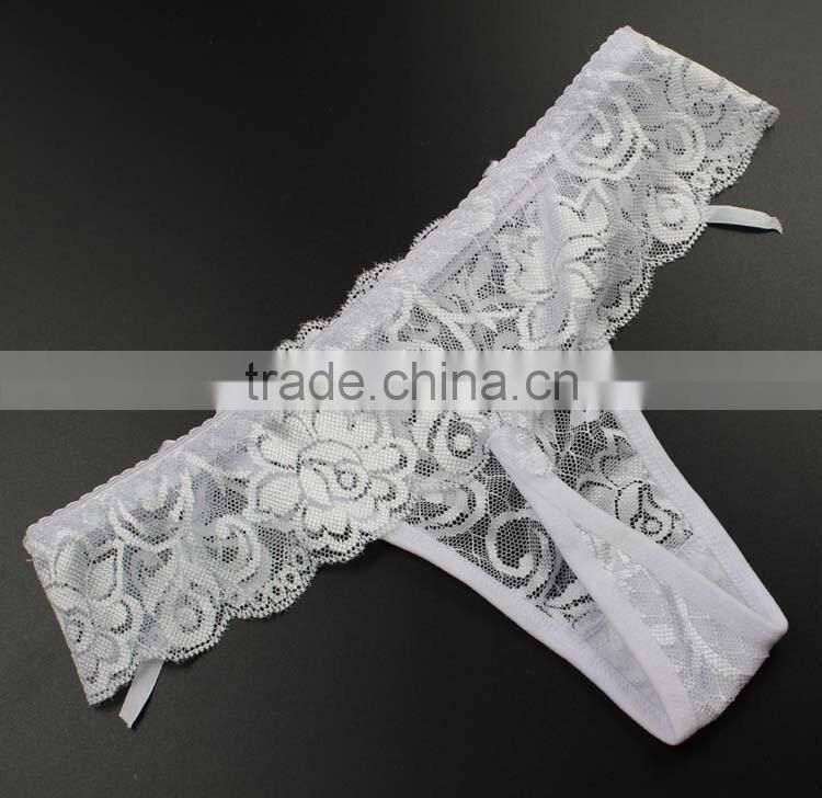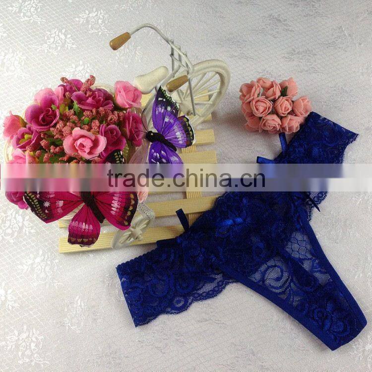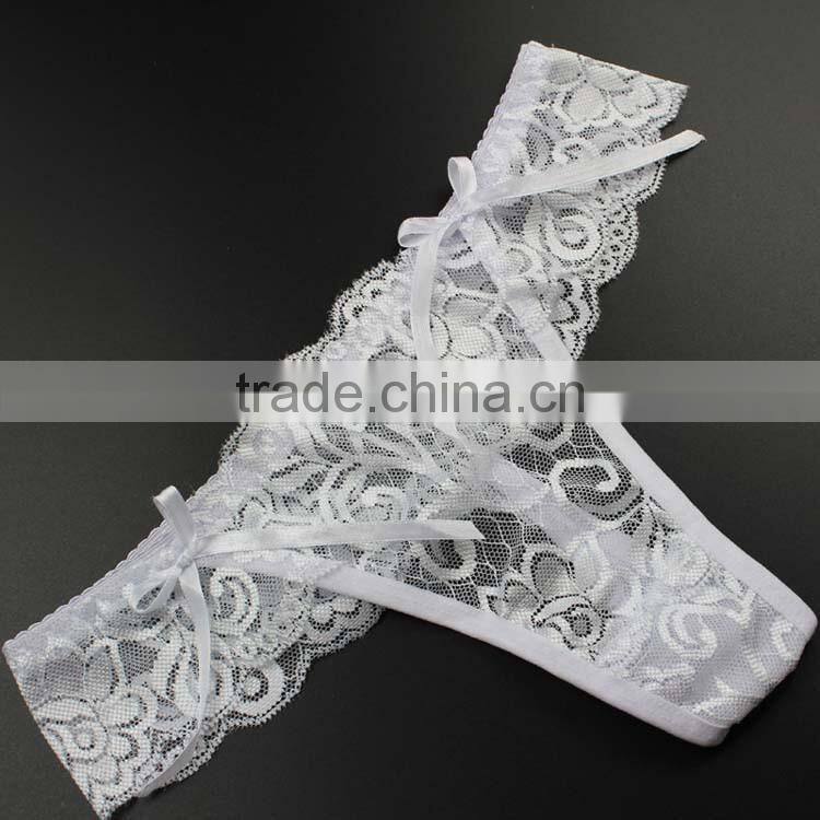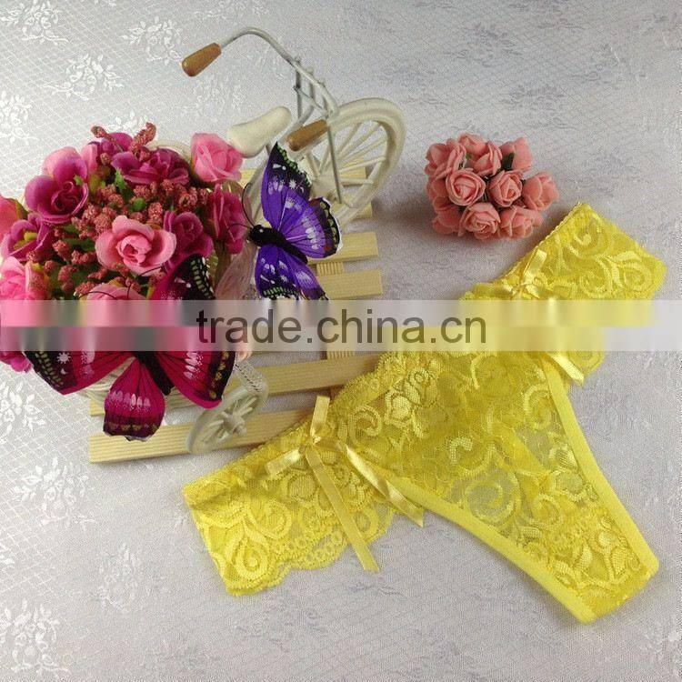 Stock Summer Style Double Bowknot Transparent Sey Panties Women Lace Thongs Sey G String T Back Lady Briefs Seamless Underwear w