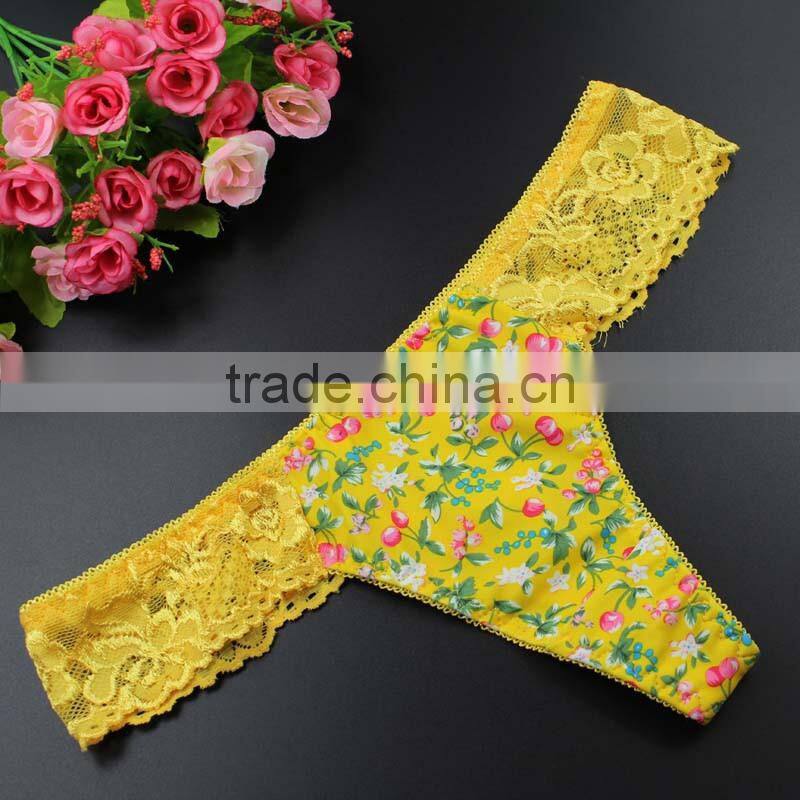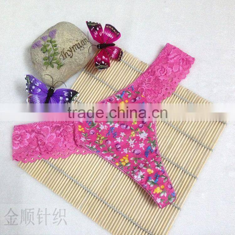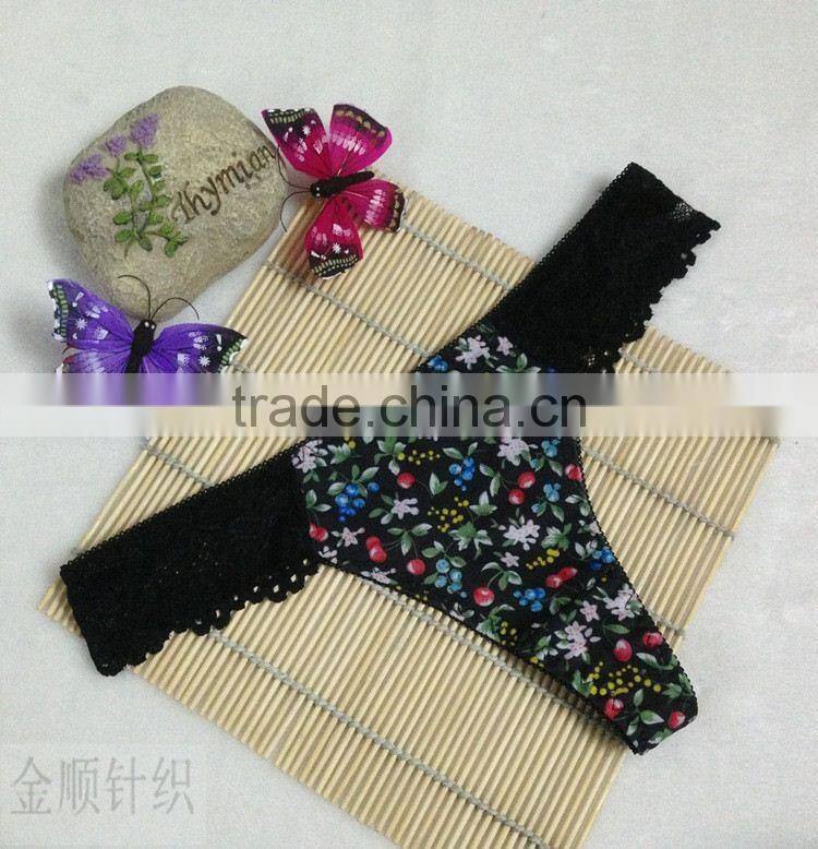 Stock Floral Flower Print Cute Low Waist Lace Sey Panties Women Underwear Thongs Bragas Women Panties Sey Underwear Women Briefs