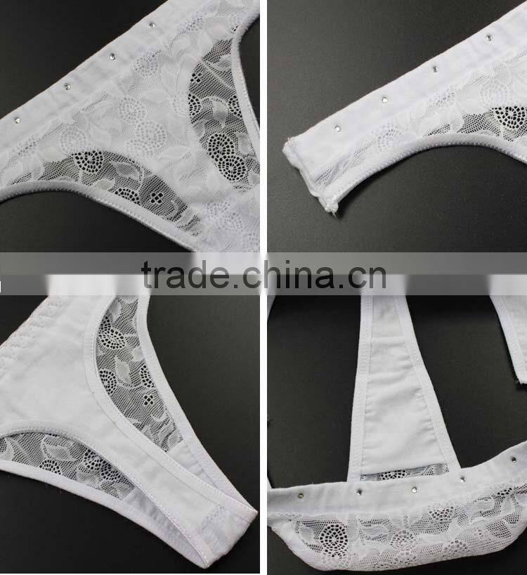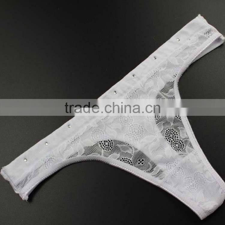 Stock Fashion Summer Style White Sey Panties Underwear Women Briefs Diamond Transparent Bright Side Cotton Thongs g Strings for
