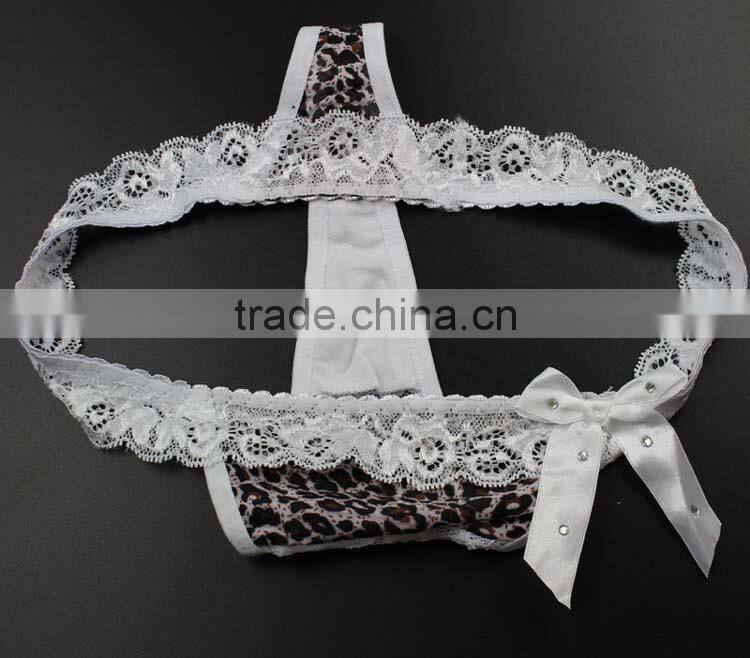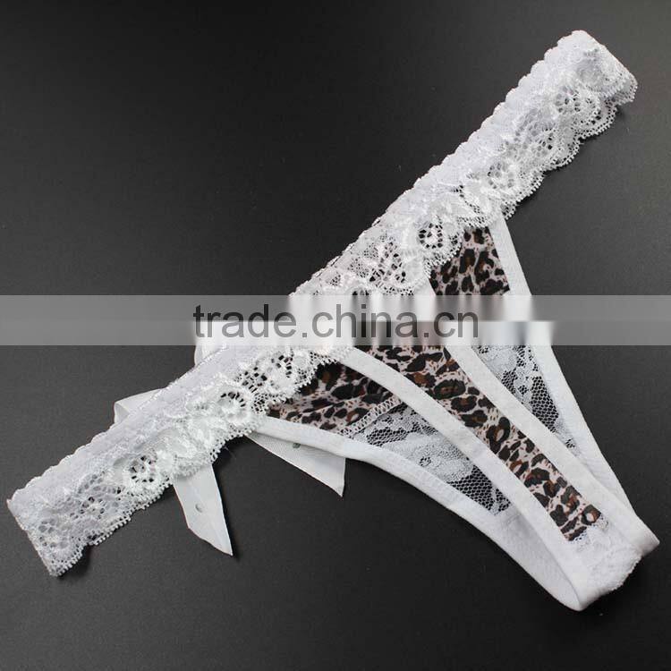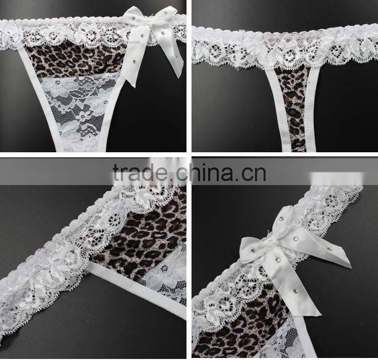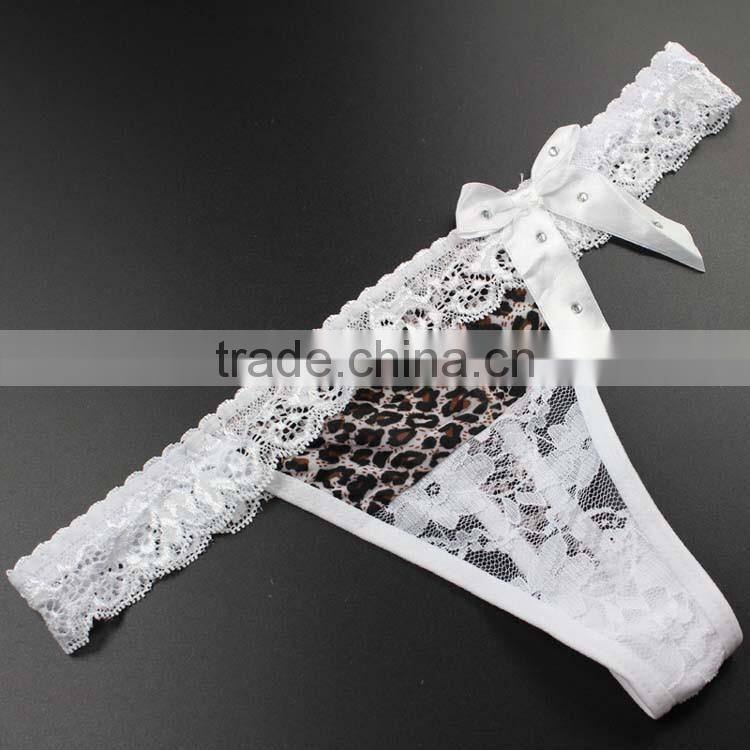 Stock Hot Sale White Bowknot Lace Leopard Cute Underwear Women Sey Panties String Women Thongs and g Strings Female Briefs G-str