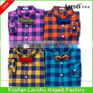 Children Clothing Brand Fashion Bow Tie Kids Boutique shirt Little Gentleman plaid Shirts for 2-12 Years