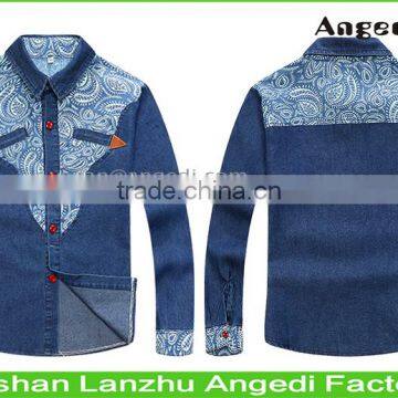 Children denim shirt boy's slim fit top clothing fashion Casual shirt with patchwork |