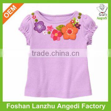 OEM eco-friendly soft kids organic cotton t shirt with ruffle/cap sleeve and water base printing