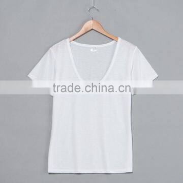 Home > Apparel & Accessories > Apparel Stocks > Deep Scoop Neck Women T Shirts.sublimation Blanks. Print Your Own Design. Real Factory. 3-5 Day Production Time