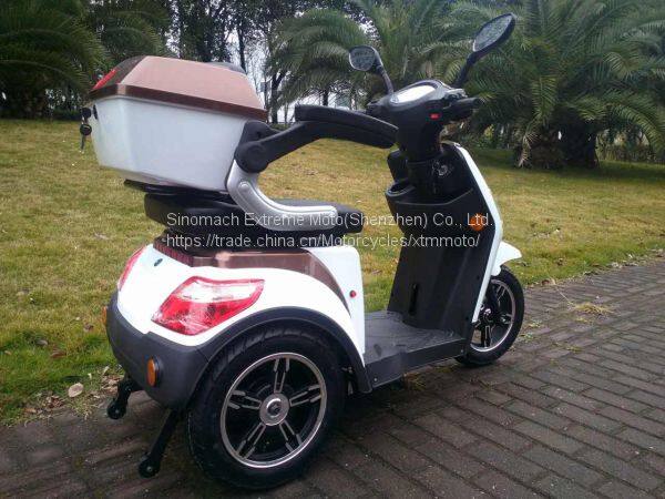 XTM-ET001 Electric Mobility Scooter is a new type Mobility Scooter. It has a long-range of 35-40 km on a single charge and a top speed of 15 km/h / 25 km/h. It is great alternative to driving short distances or walking long distances. The small rear seat is perfect for a carrier. We are seeing these sold into city and all kinds of family settings as a walking tool. As with all kinds of electric vehicle products, 3 wheel mobility scooter only need single charge 6-8 h to get going.