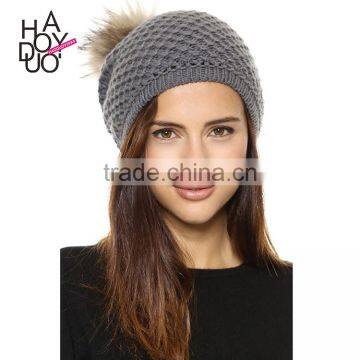 HAODUOYI Winter Knit Fur Ball Decorated Hat Warm Caps for Wholesale