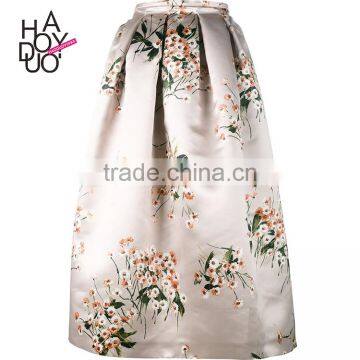 HAODUOYI Women Flower Printing Skirt Casual Midi Elegant High Waist Satin Skirt