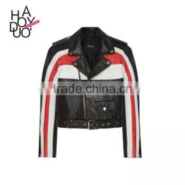 HAODUOYI Women Autumn Color Block PU Leather Bomber Jacket for Wholesale