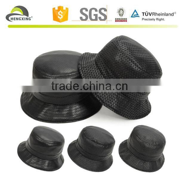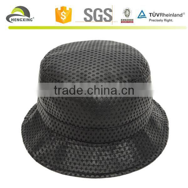 1)Pu holes faux leather mesh bucket hat