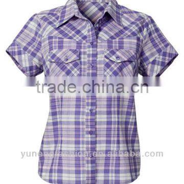 ladies plus size blouse short sleevecotton blouse Checked blouse