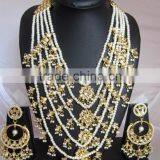 7 Line Bridal KUNDAN GOLD PLATED Necklace DANGLER EARRING Set