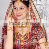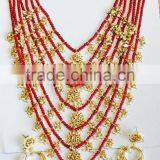 7 Line Ruby Red Bridal KUNDAN GOLD PLATED Necklace DANGLER EARRING Set