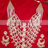 5 Line Bridal KUNDAN Designer Pearl GOLD PLATED Necklace DANGLER EARRING Set