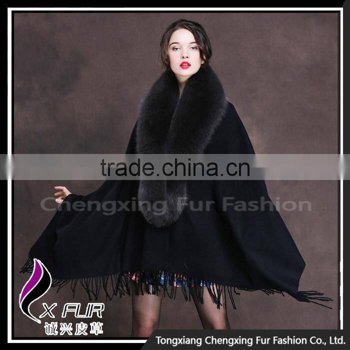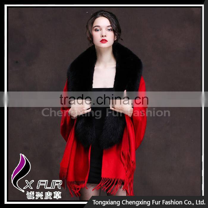 CX-B-P-18C New Arrival Blanket Fringe Oversize Fox Fur Trim Plain Shawl Scarf, Pashmina Shawl