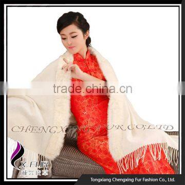 QD11655 Winter Fur Shrugs And Wraps Genuine Whole-hide Mink Fur Shawls With Fox Fur TrimNegotiableMOQ: 1 Piece