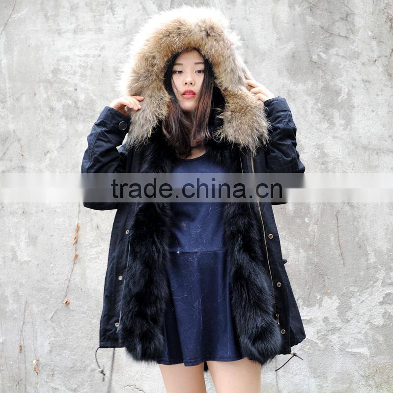CX-G-P-12M Women Real Raccoon Fur Collar Coat Real Fox Fur Parka