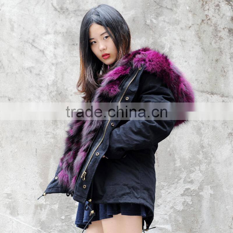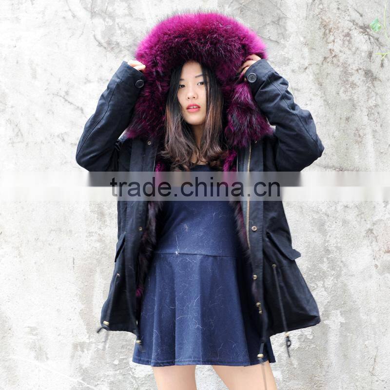 CX-G-P-05K Women Real Raccoon Fur Collar Decorate Real Fox Fur Parka