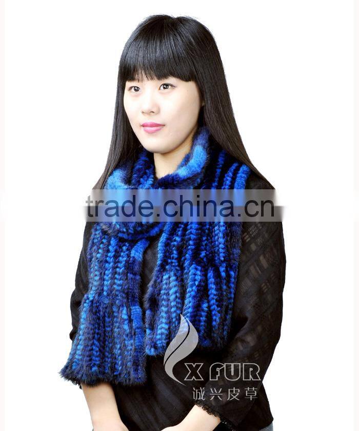 CX-S-19E 2017 Fashion Custom Scarf In Stock Knitted Mink Fur Scarf Women