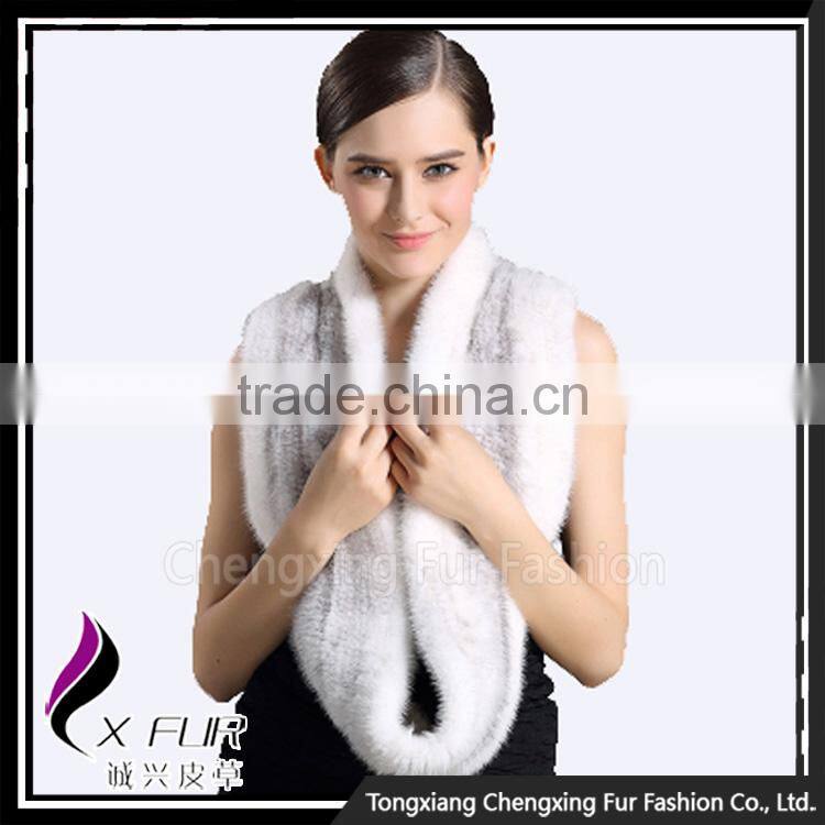 CX-S-158Q Ladies Vintage Exquisite Finest Quality Knitted Mink Fur Neckwarmer Handmade Mink Fur Scarf