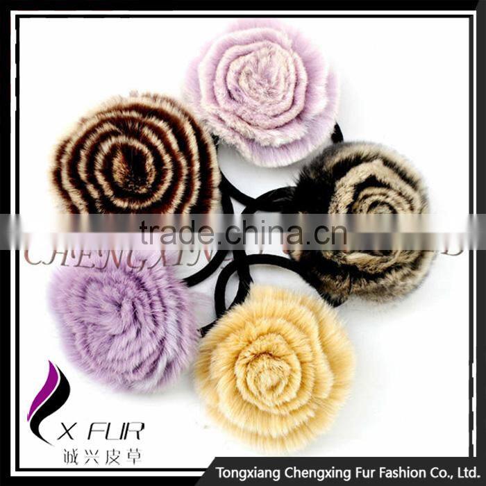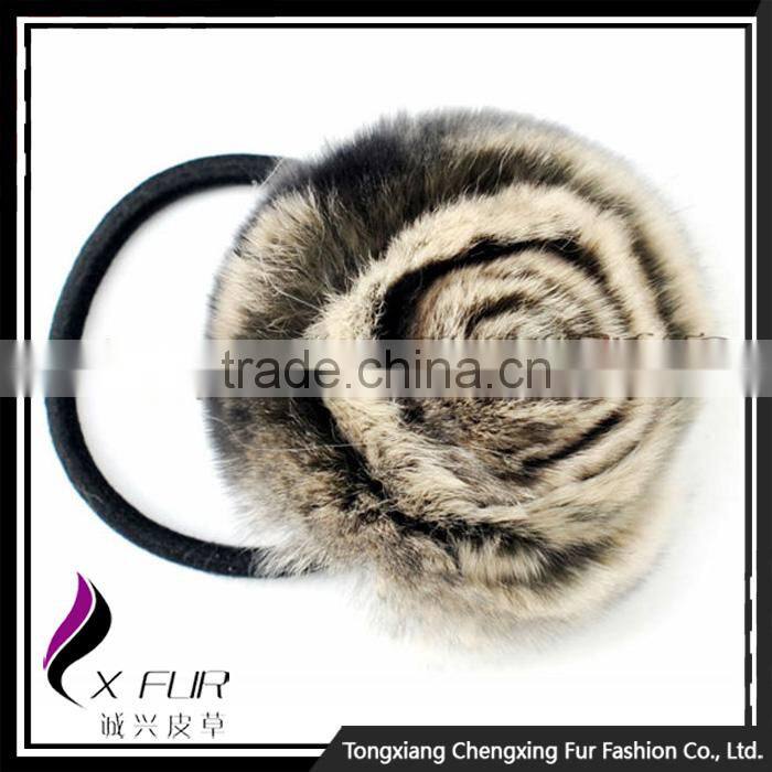 CX-E-09A Wholesale Real Rex Rabbit Fur Elastic Hair Accessory