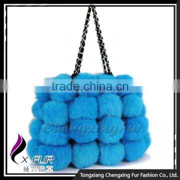 CX-H-08 Korea Fashion Blue Rabbit Fur Hand Bags For Women