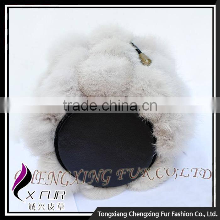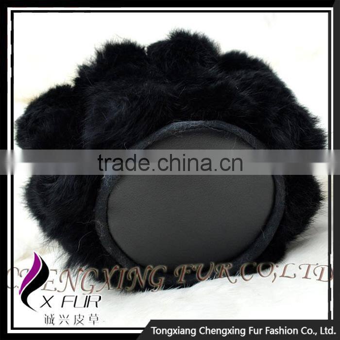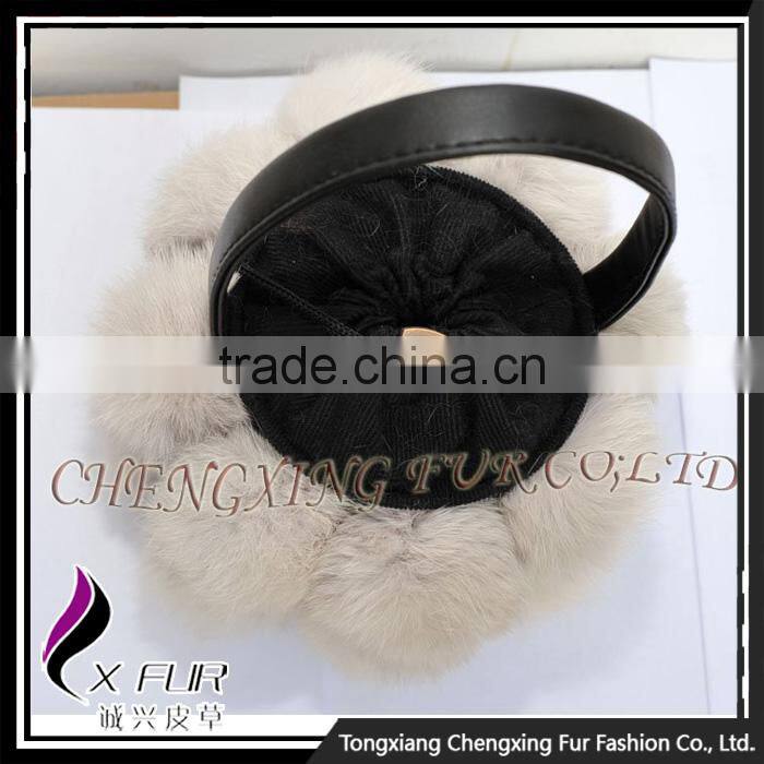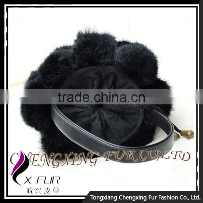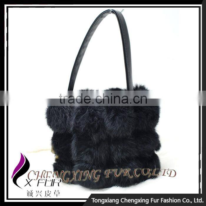CX-H-08 High Quality Black Genuine Rabbit Fur Hand Bag Fur Pom Pom