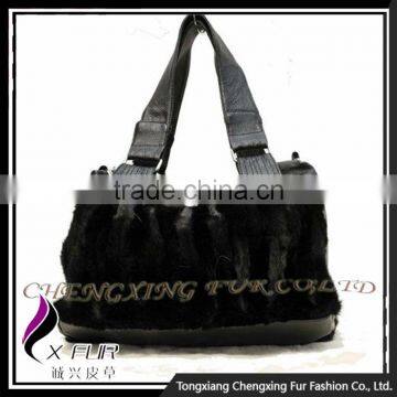 CX-H-03 China Wholesale Trendy Real Mink Fur Ladies Leather Bags Handbags