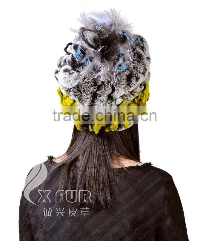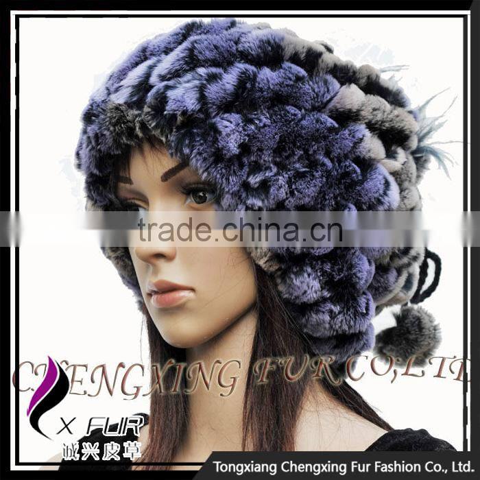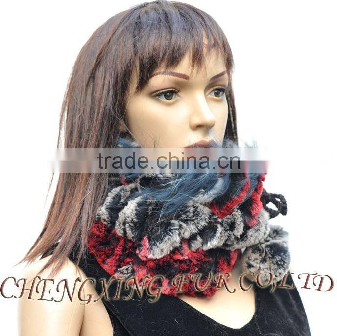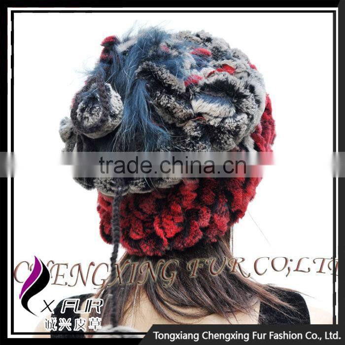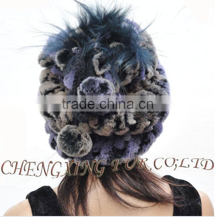 CX-C-68D Ladies Knitted Winter Neck Warmer/ Fashion Rex Rabbit Fur Hat