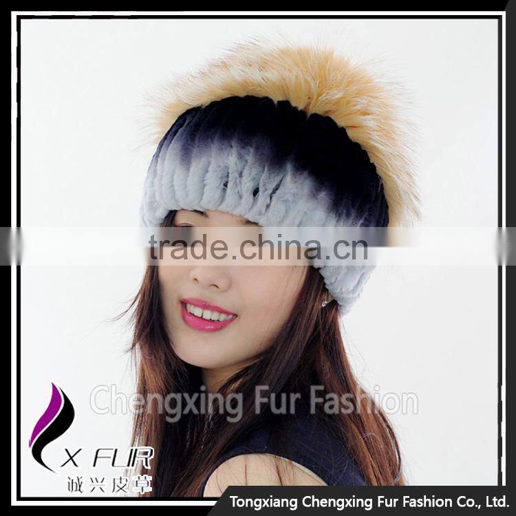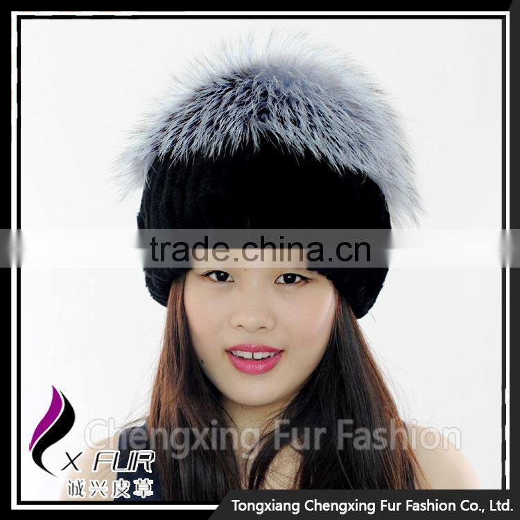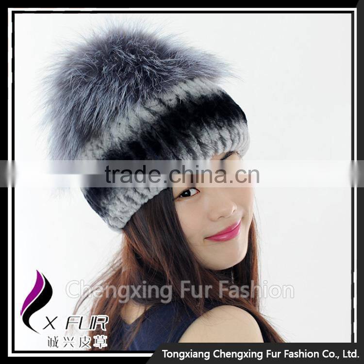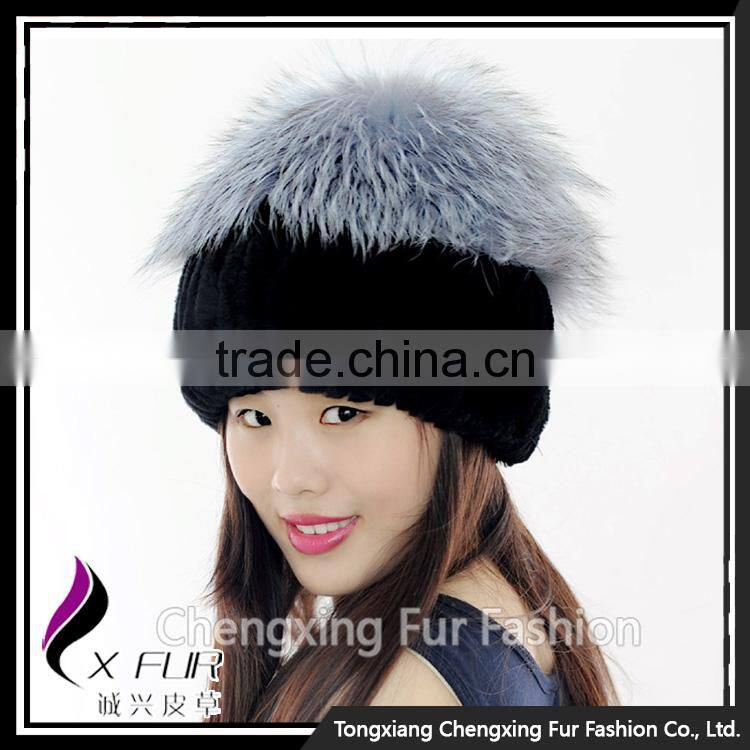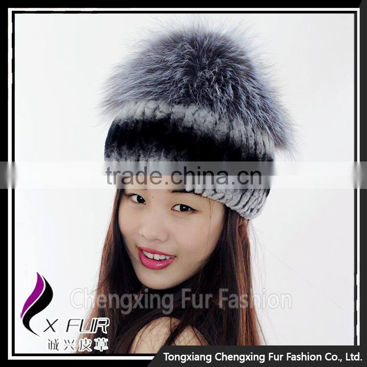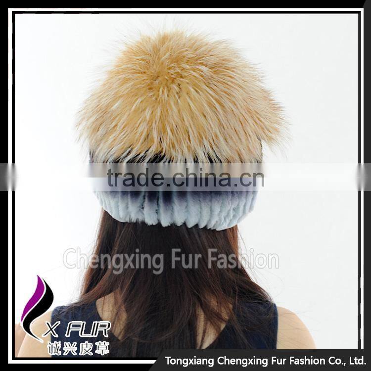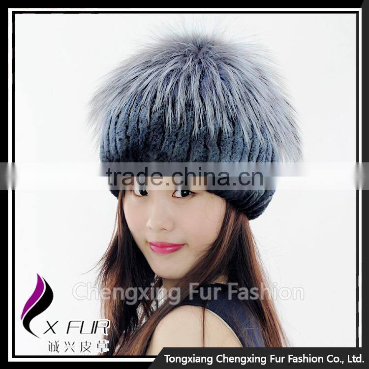 CX-C-244G 2016 New Products Hot Sale Handknitted Rex Rabbit Fur Cap Hat