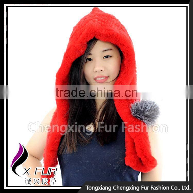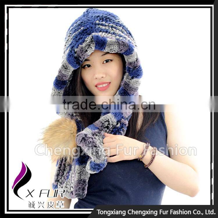 CX-C-242G Women Fashion Fur Hooded Scarf Winter Warm Rex Rabbit Fur Hat