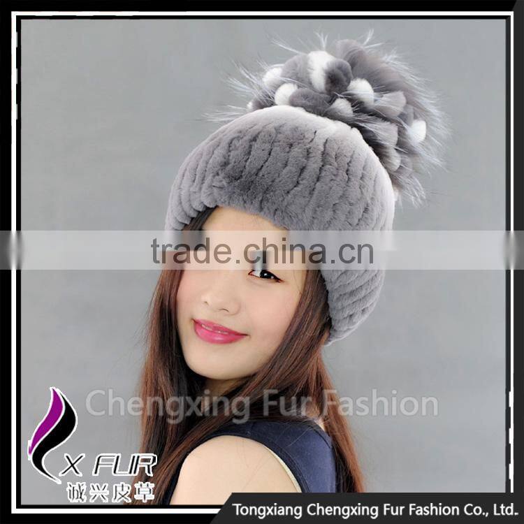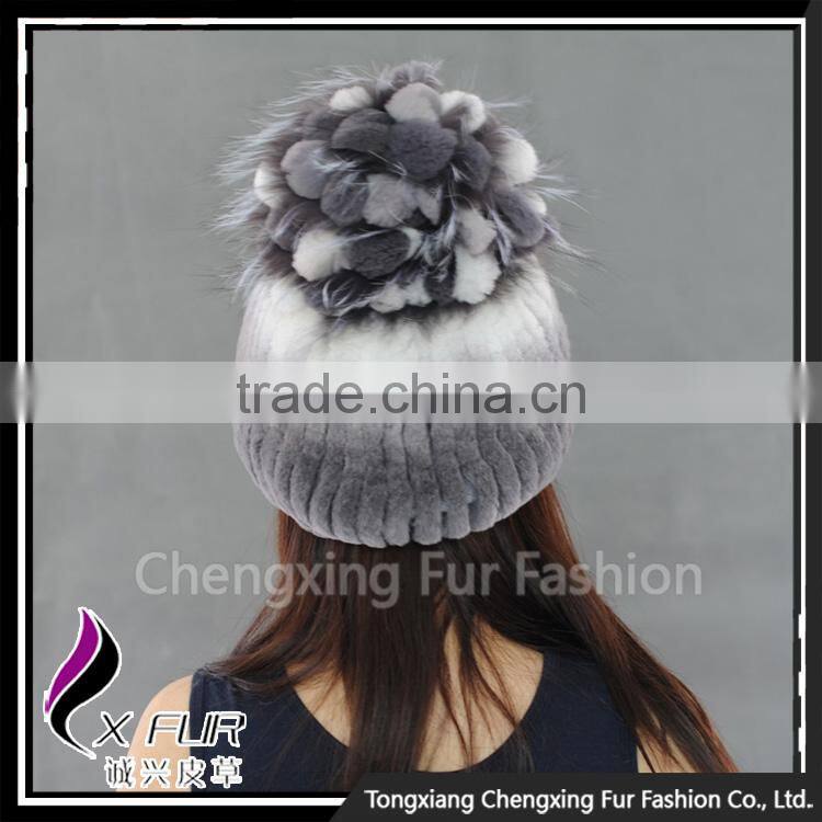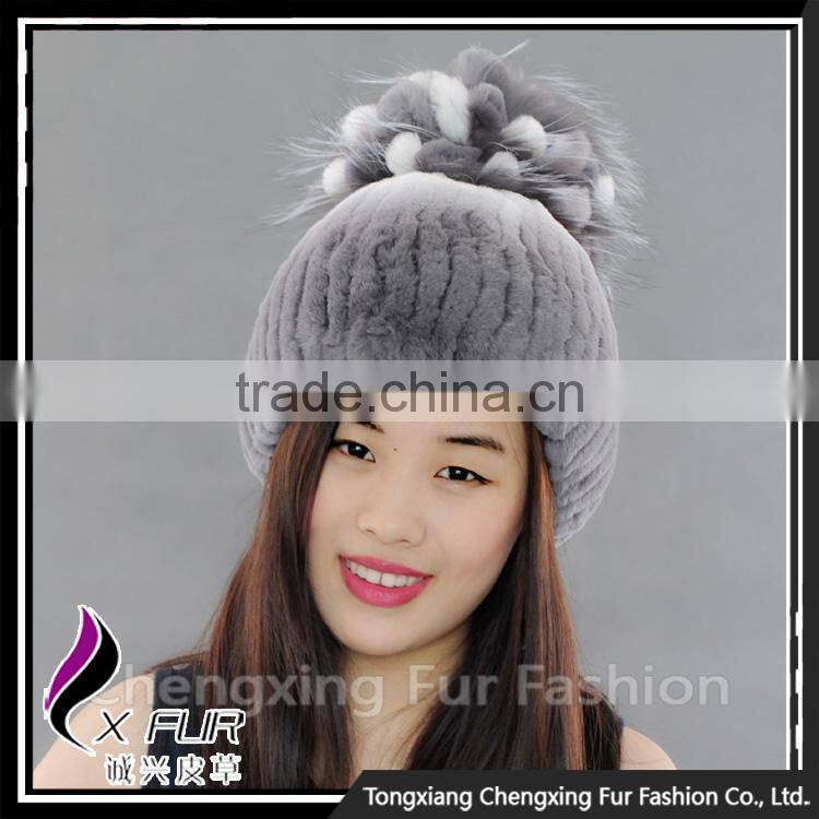 CX-C-245C Custom Cute Pom Pom Rex Rabbit Fur Beanie Hat And Cap Fur Hats