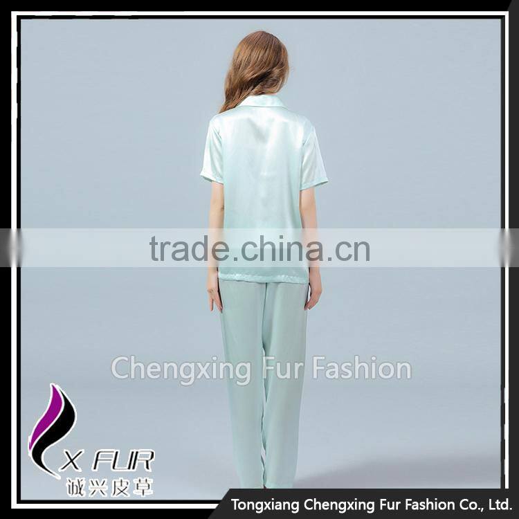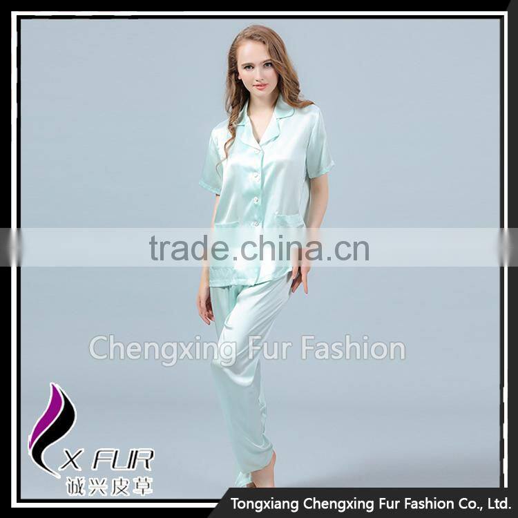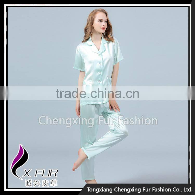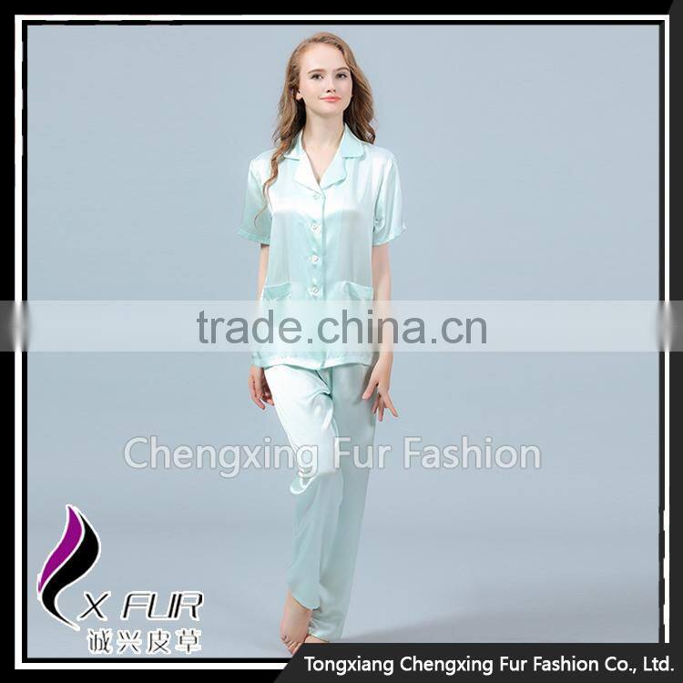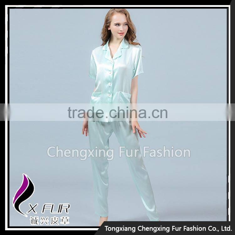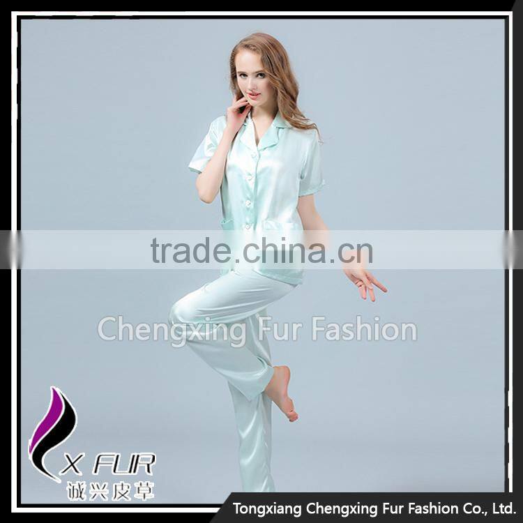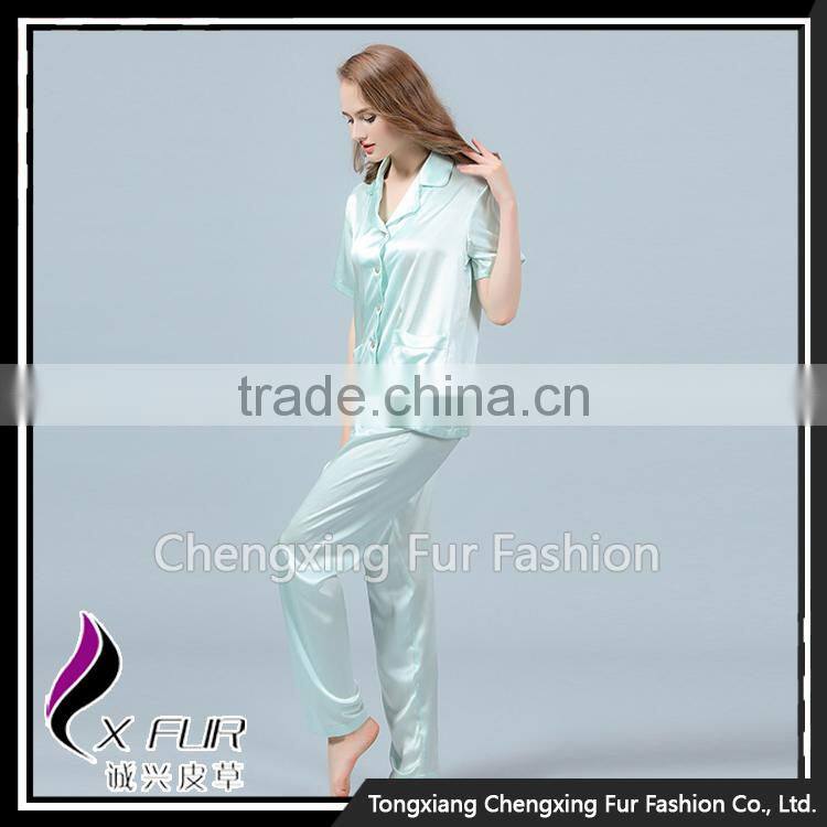 CXTZ01 Wholesale Cheap Ladies Silk Pajamas Home Wear With Pockets