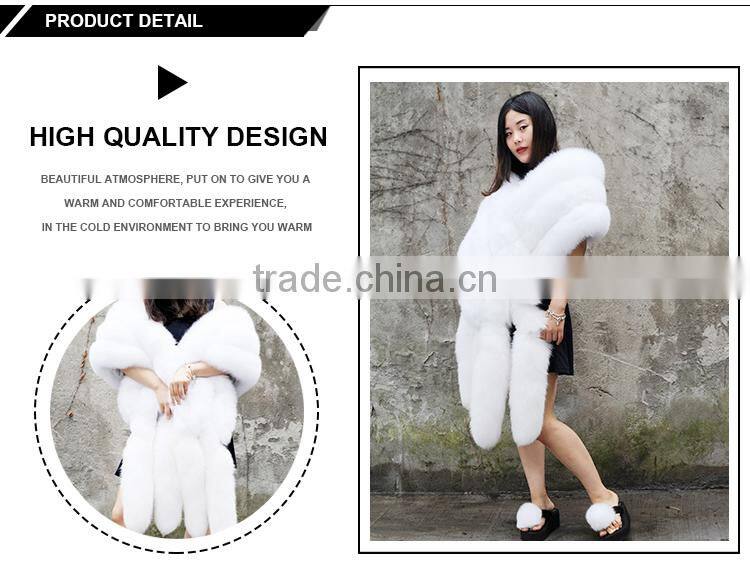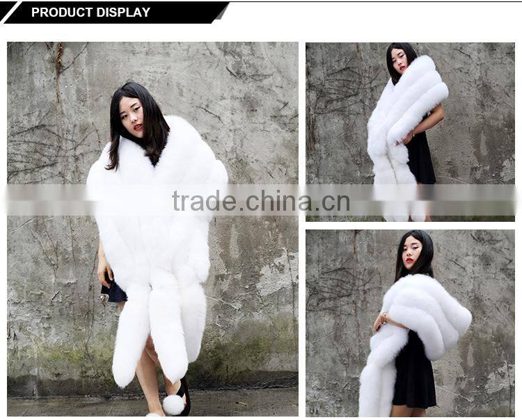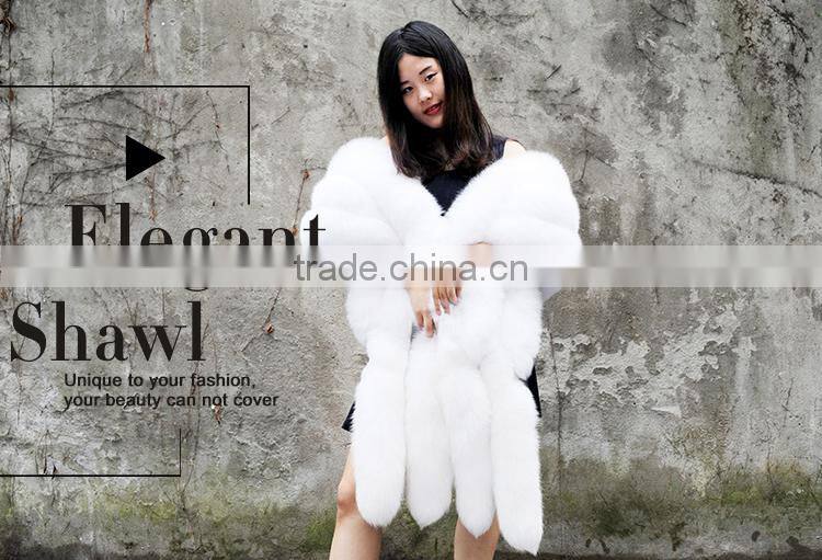 CX-B-32 OEM Service White Long Plain Color Fox Fur Shawls