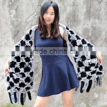 CX-B-65C Hot Sale Knitted Fur Blanket Scarf Shawl Rex Rabbit Fur Dresses Blanket Scarf Pockets