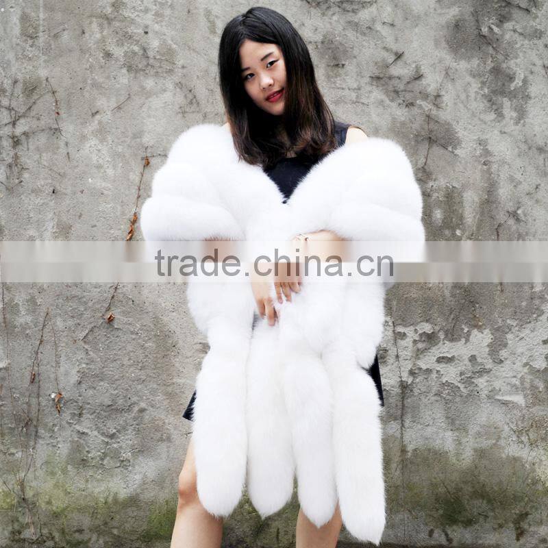 CX-B-33 Wholesale European Real White Fox Fur Shawl With Fox Fur Tail