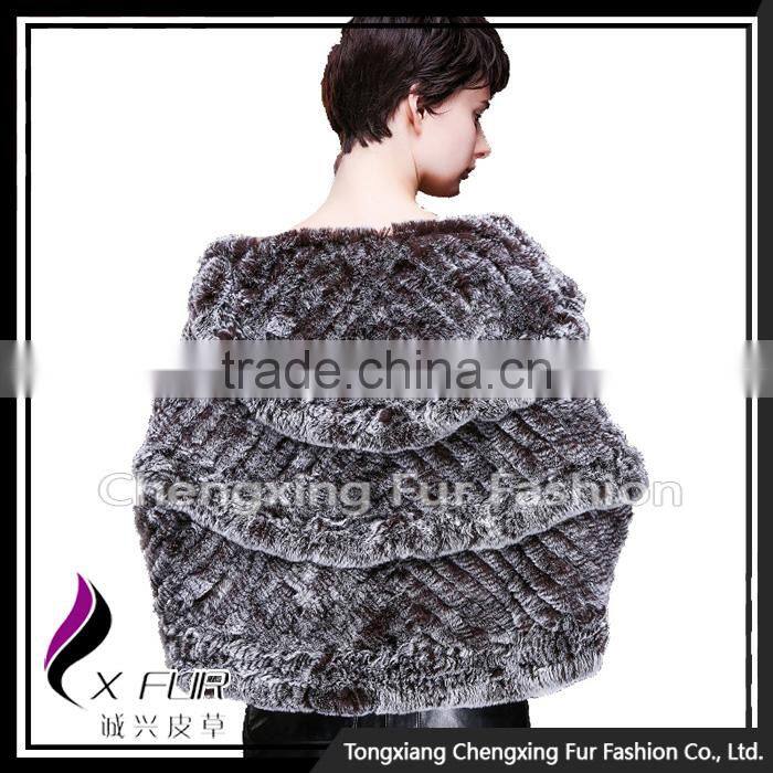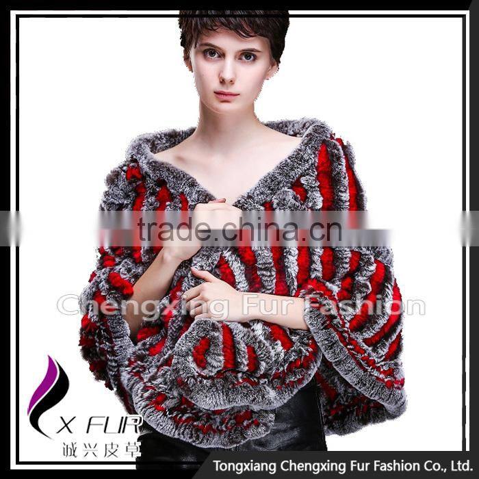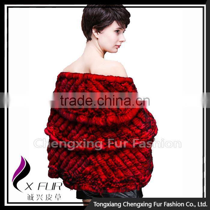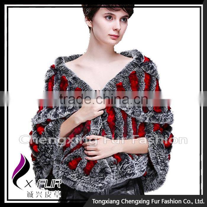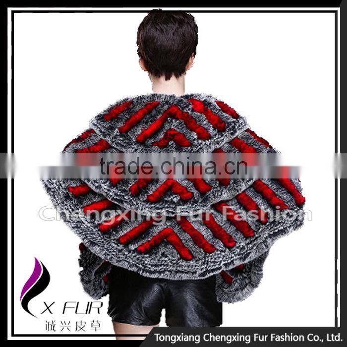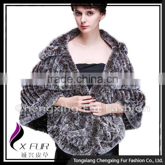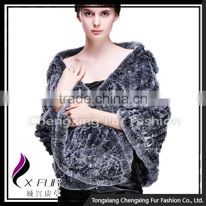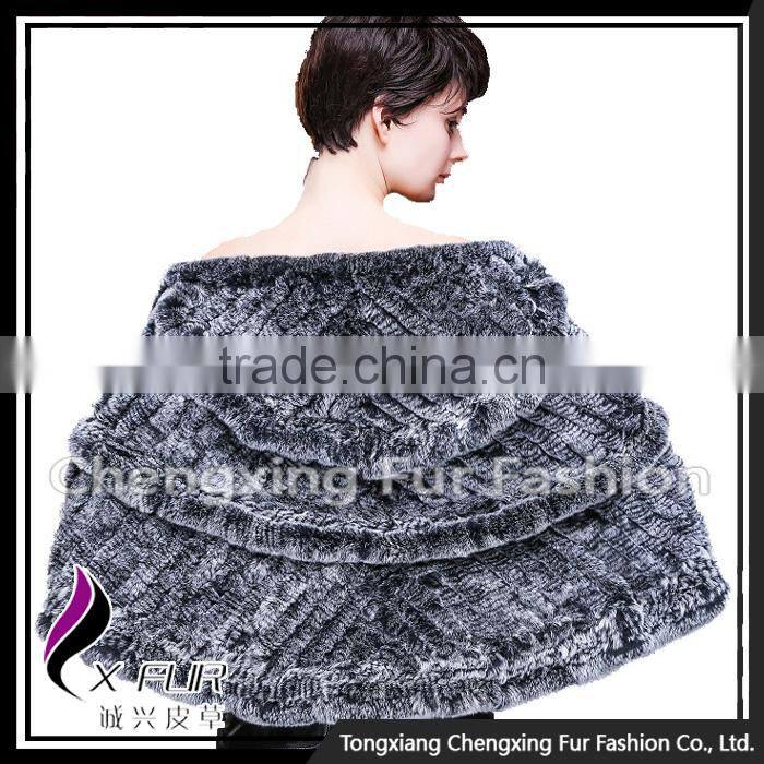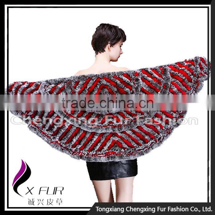 CX-B-74B European Women Fashion Chinchilla Printed Rex Fur Shawl