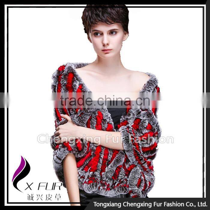 CX-B-74A Knitted Rex Rabbit Fur Wholesale Korean Fashion Fur Cape/Fur Shawl