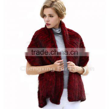 CX-B-M-46C Hot Sale Real Knitted Mink Fur Shawl For Fashion Girls With Factory Price