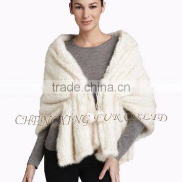 CX-B-M-107D Fashion Poncho Manufacturers White Knitted Mink Fur Shawl