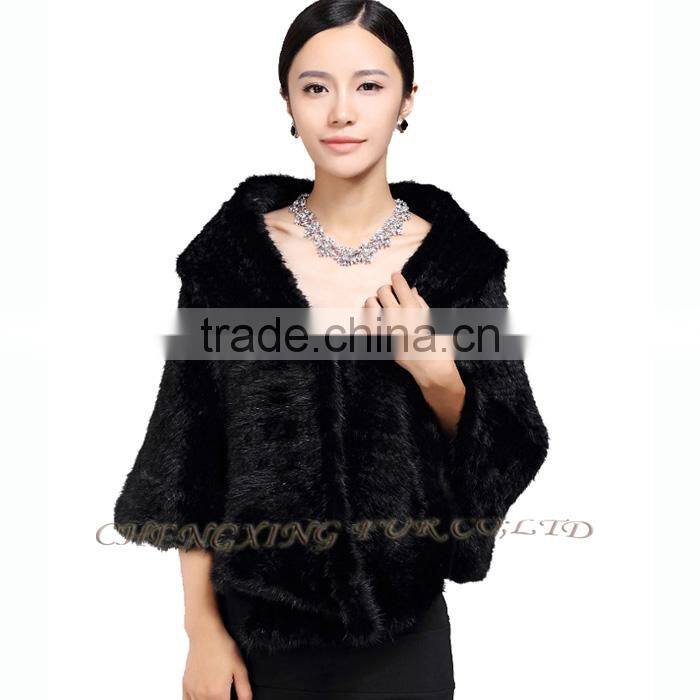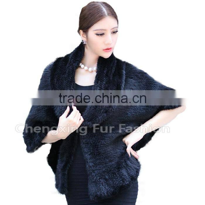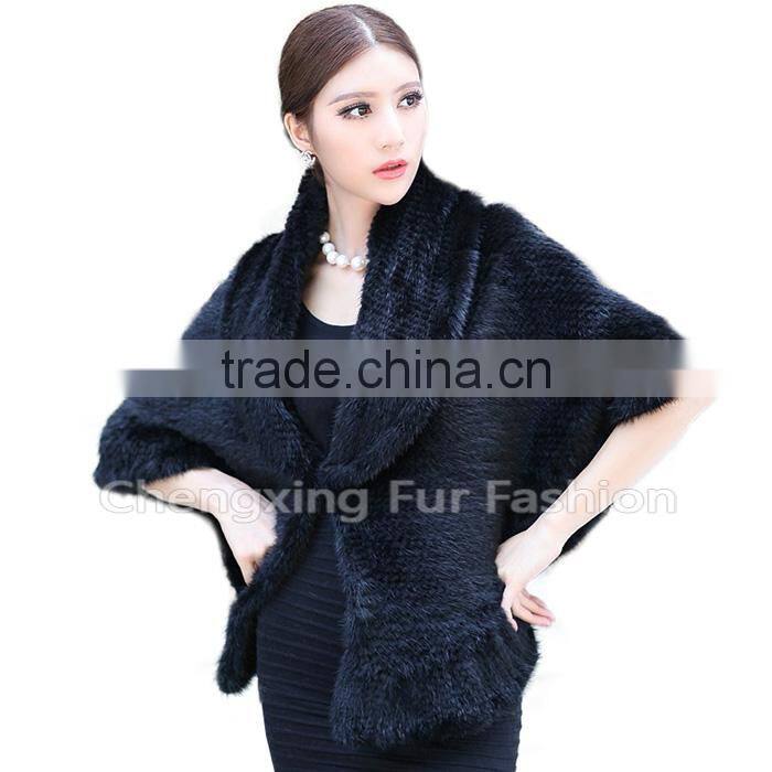 CX-B-M-21 Good Quality Fashion Cape Poncho/ Knitted Mink Fur Shawl