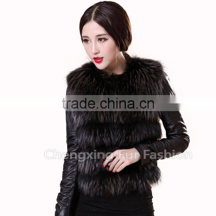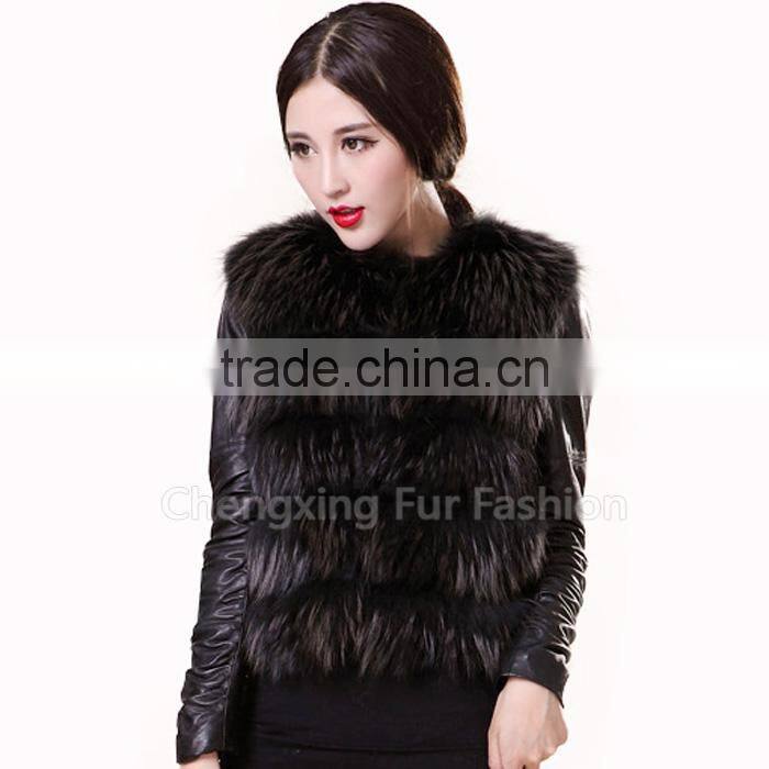 CX-G-B-122B Women Genuine Fur Clothing Fashion Real Raccoon Fur Vest