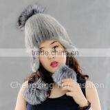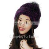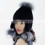 CX-C-239G Women Fashion Fox Fur Pom Pom Winter Knitted Mink Fur Hat And Cap