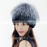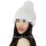 CX-C-42A Hand Knitted Mink/ Silver Fox Fur Pom Pom Hot Sale Lady Hat Wholesale
