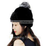 CX-C-02F Lovely Custom Beanie Hat Fashion Handmade Rex Rabbit Fur Hat